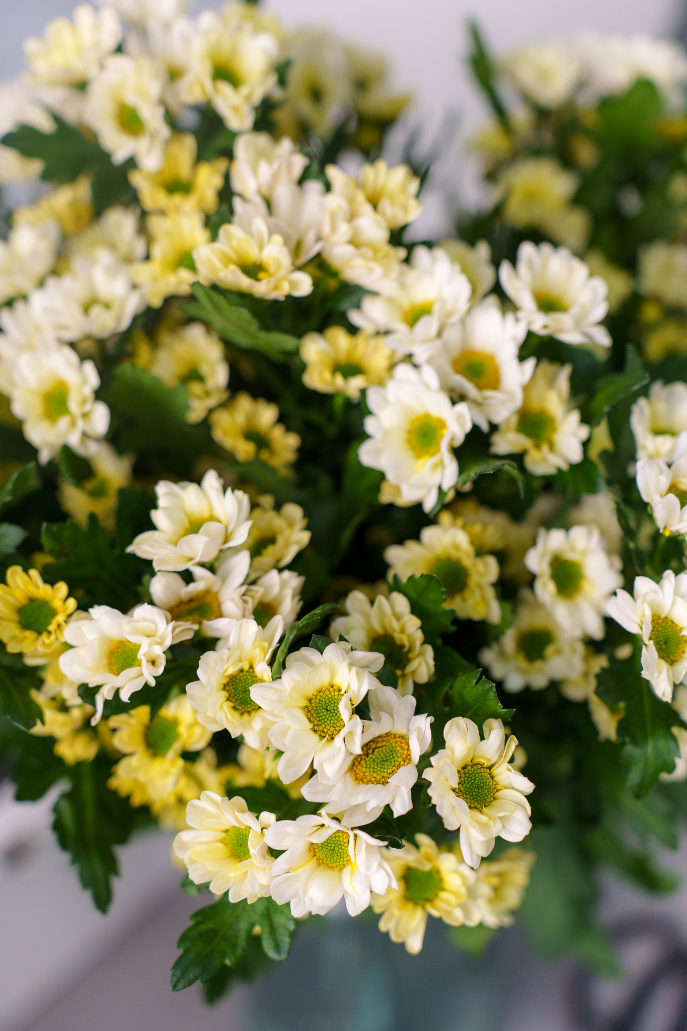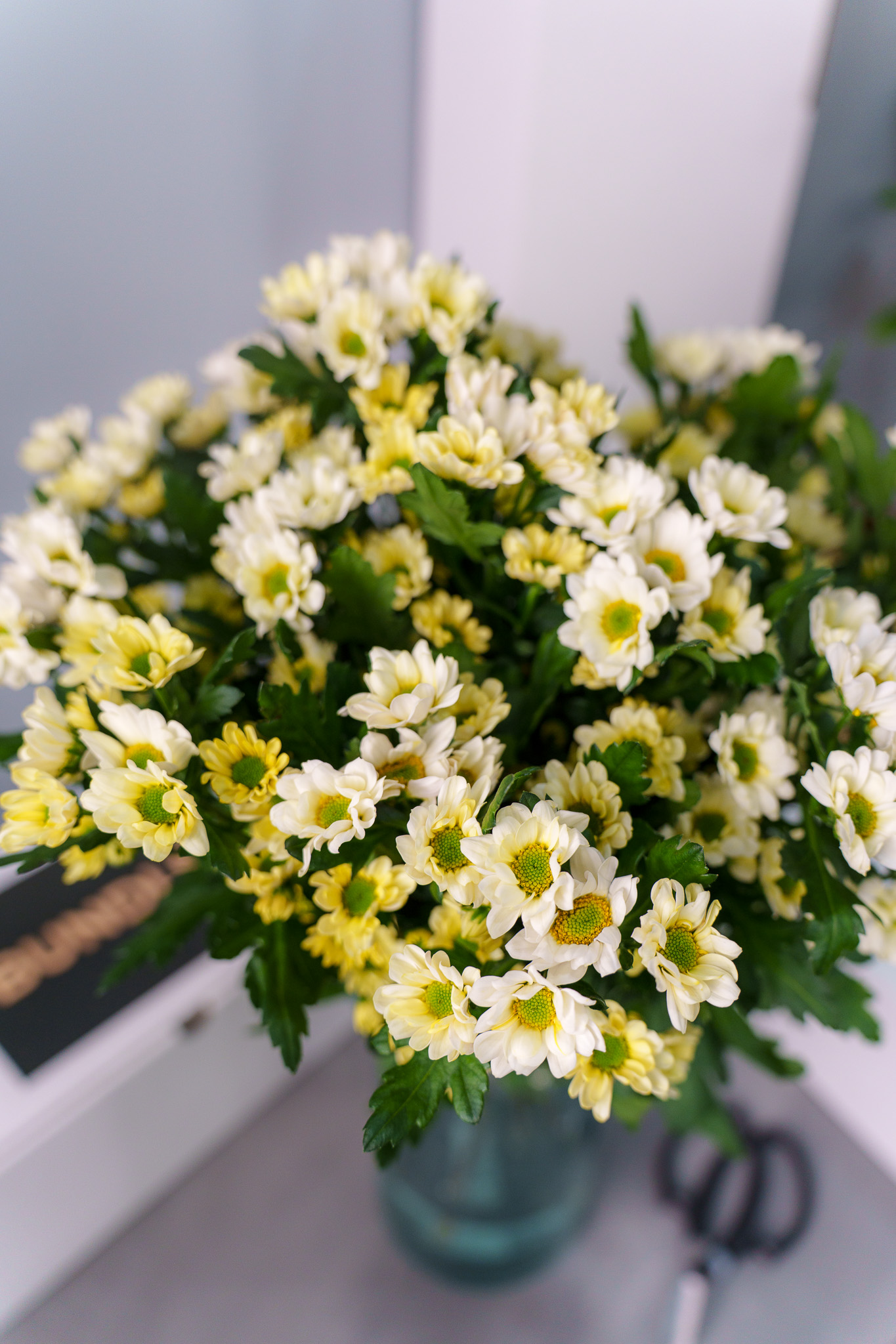 Яркие белые, ромашкоподобные хризантемы-сантини. Очень стойкие и ароматные цветы. 15 шт.